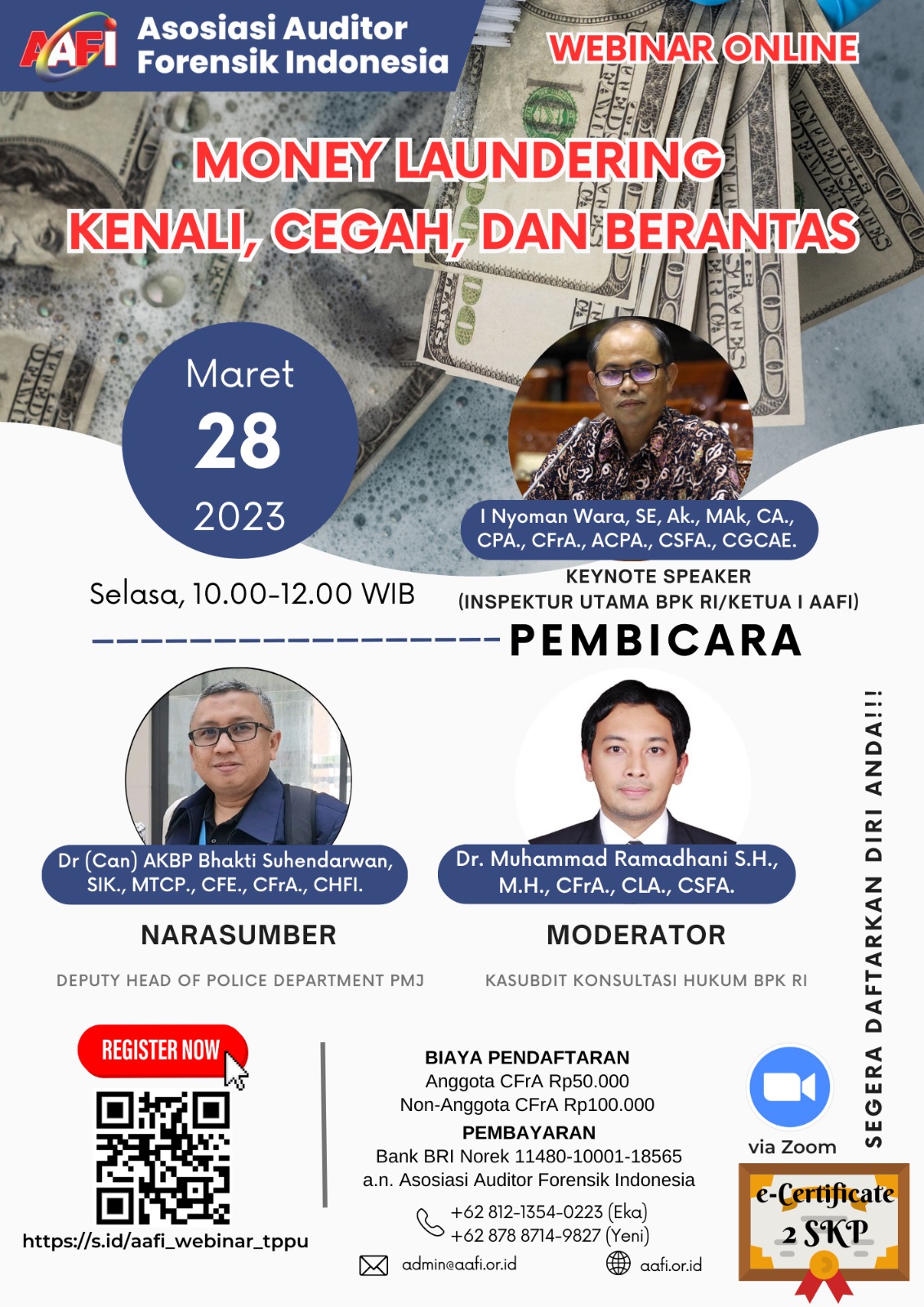 Asosiasi Forensik Auditor Indonesia (AAFI TELEME) mengundang Bapak/Ibu dalam Webinar Online dengan Tema MONEY LAUNDERING, KENALI, CEGAH, DAN BERANTAS