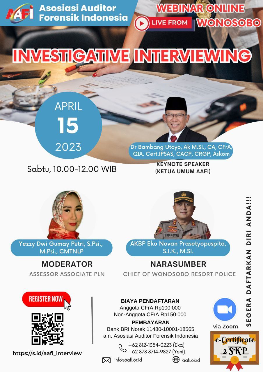 Asosiasi Forensik Auditor Indonesia (AAFI TELEME) mengundang Bapak/Ibu dalam Webinar Online dengan Tema INVESTIGATIVE INTERVIEWING