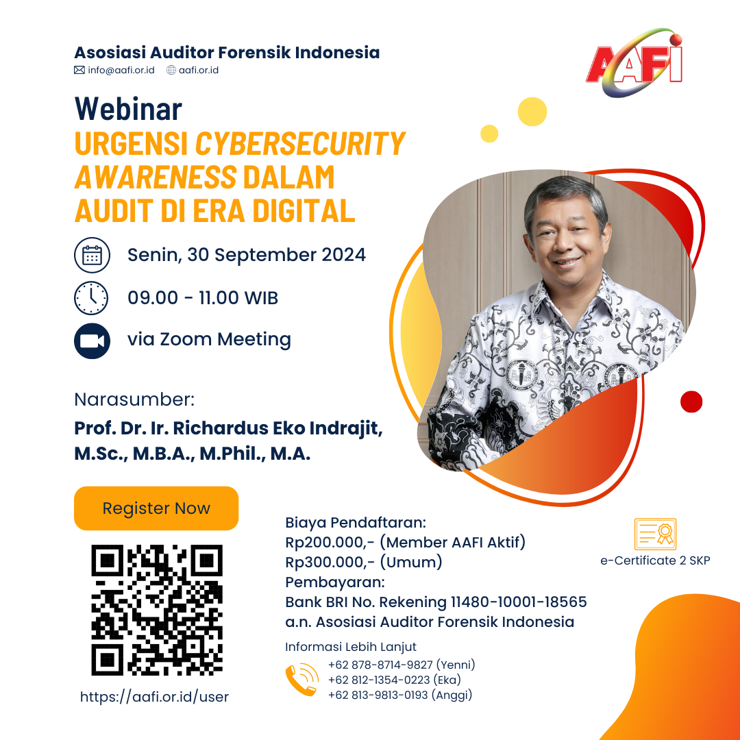 Asosiasi Auditor Forensik Indonesia Teleme (AAFI TELEME) mengundang Bapak/Ibu dalam Webinar Online dengan Tema: Urgensi Cybersecurity Awareness dalam Audit di Era Digital